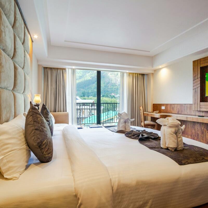 The Quantum Suite offers a spacious and modern living area with stunning views of the city. Perfect for both leisure and business travelers, it features a king-sized bed, a fully equipped kitchenette, and high-speed internet access. Starting from $120 per night for guests attending courses or $150 for vacation stays. 5 images: [2407650, 6693715, 6693721, 6693704, 2483709]